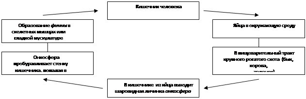 Мясо, содержащее жизнеспособные финны, не прошедшее ветеринарного осмотра, служит источником заражения человека: при употреблении в пищу непрожаренной или непроваренной, а также сырой говядины. В кишечнике человека оболочка финны растворяется, головка молодого червя выворачивается и с помощью присосок прикрепляется к слизистой оболочке тонкой кишки. Из половозрелой особи получаются зрелые членики с яйцами.